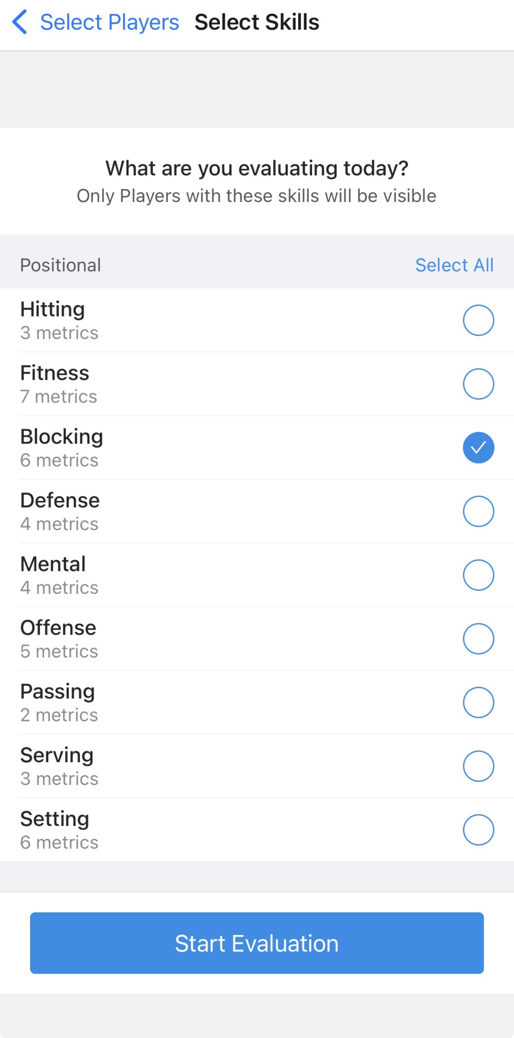 Select the skill(s) you will be evaluating.