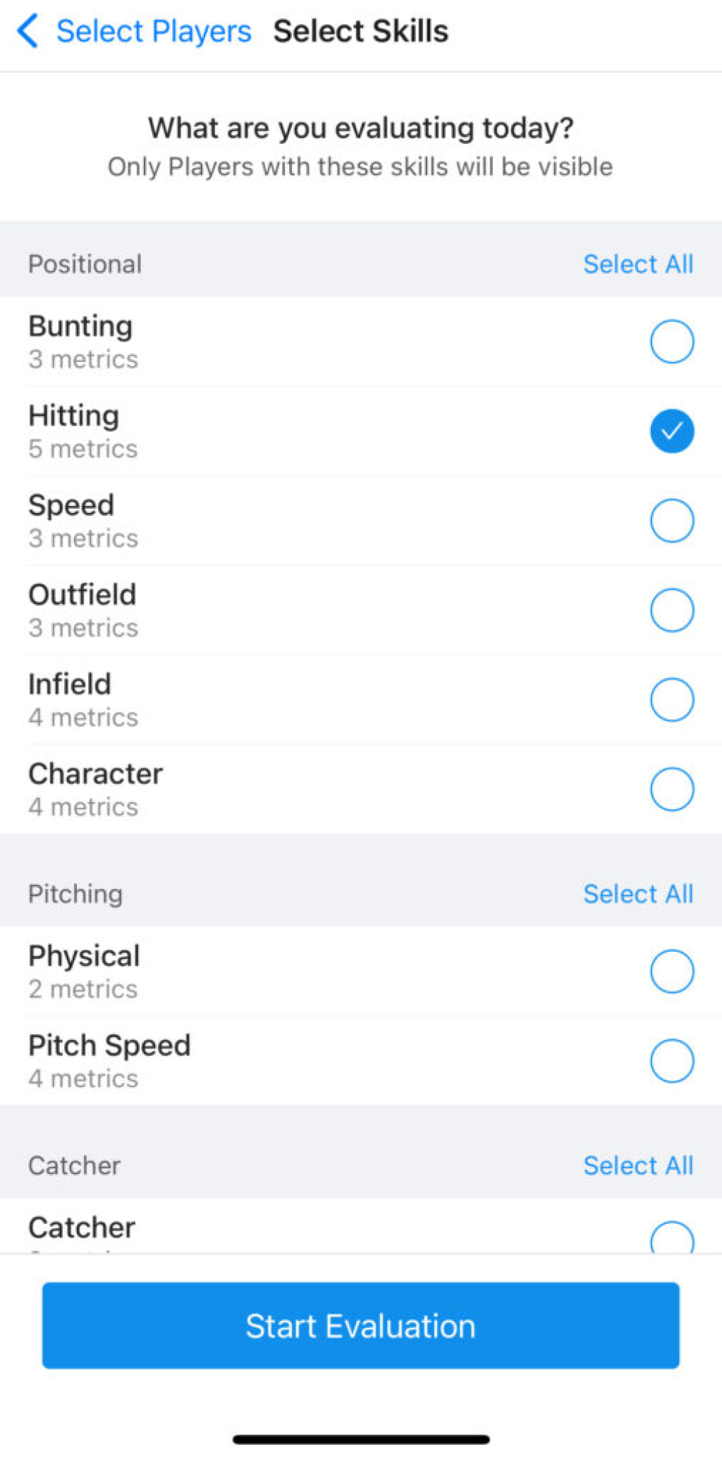 Select the ‘Hitting’ metric. And click ‘Start Evaluation.’