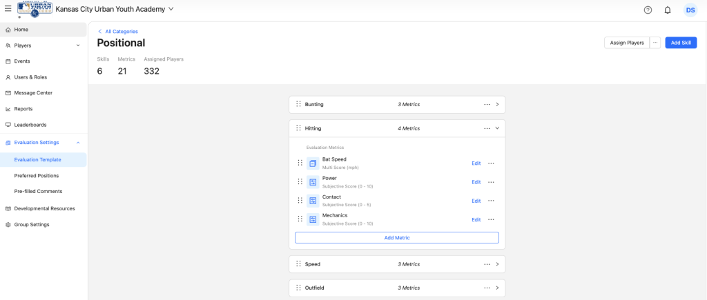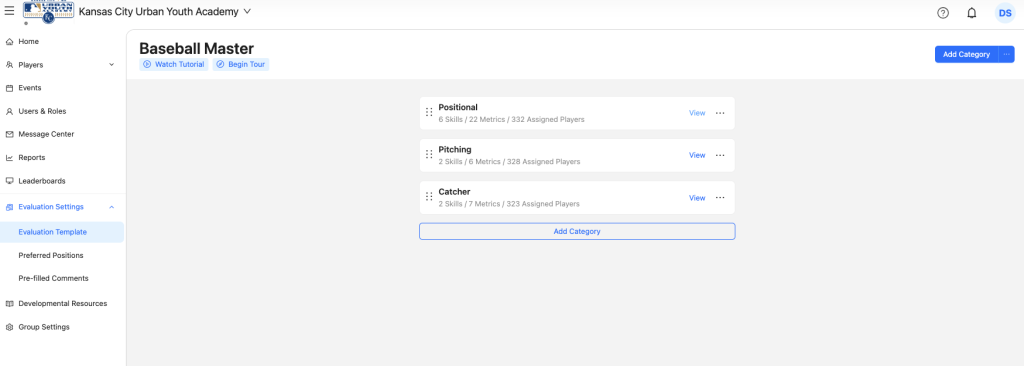 Once in your evaluation template, click on ‘View’ beside the ‘Positional’ category. This will show you all the skills under that category.