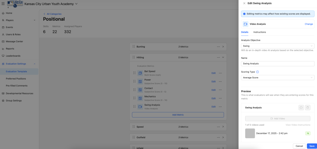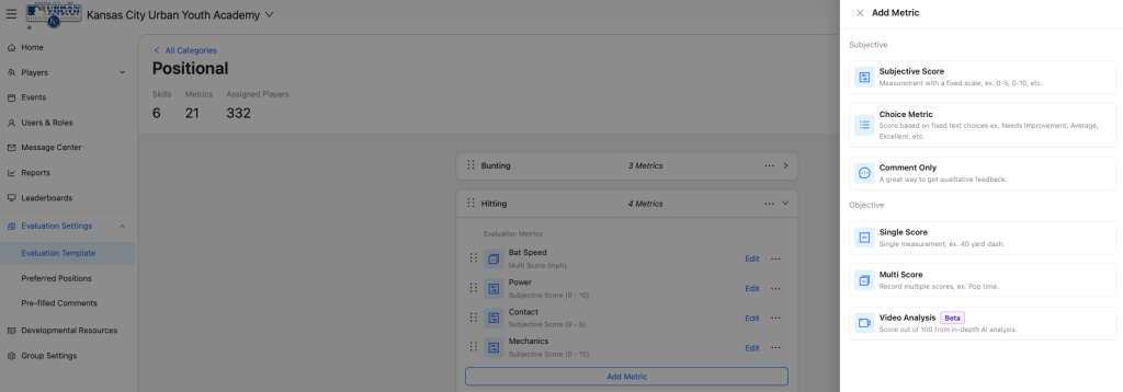 Click on the blue ‘Add Metric’ button on the bottom right. It will now be added to your evaluation template for all evaluators to score.