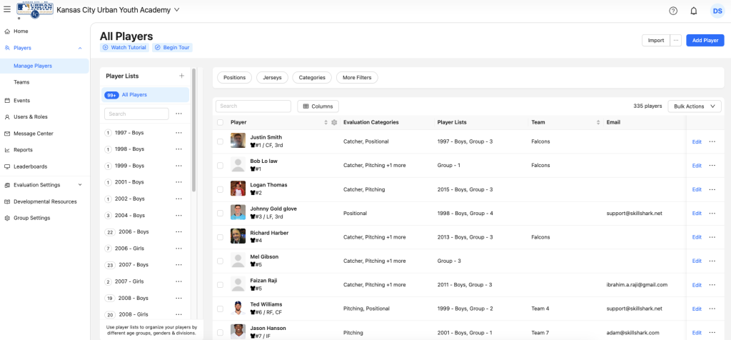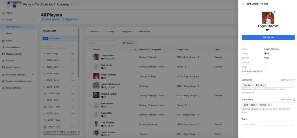Go to ‘Players’ on the left-hand navigation menu and click on ‘Manage Players.’