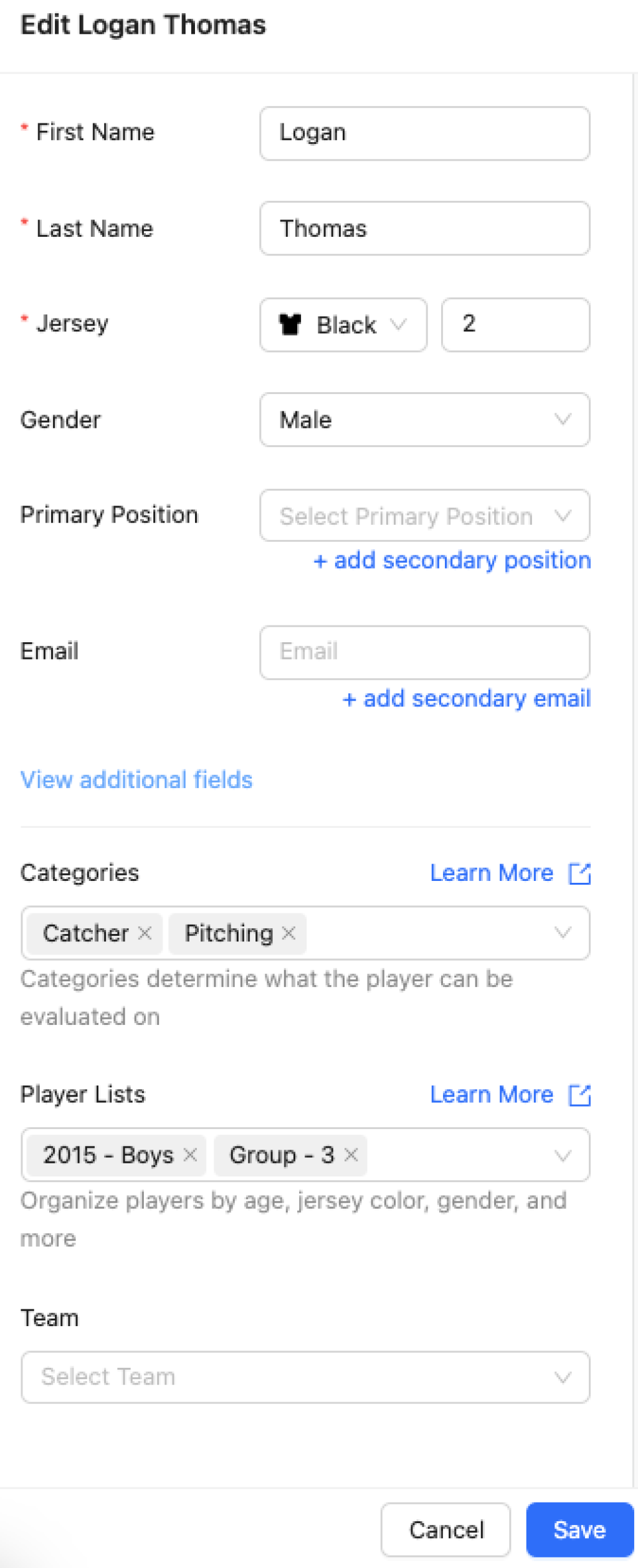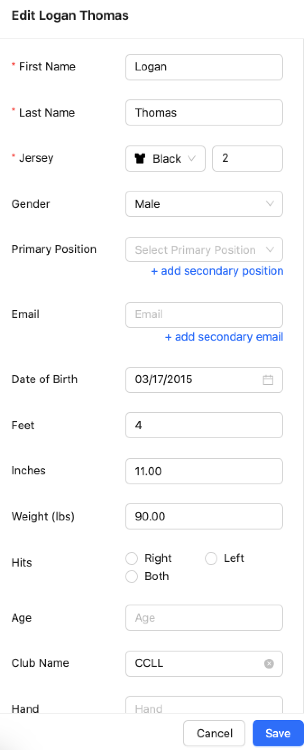 Once in the players section, click on the blue ‘Edit’ button to the far right-hand side beside any player’s name.