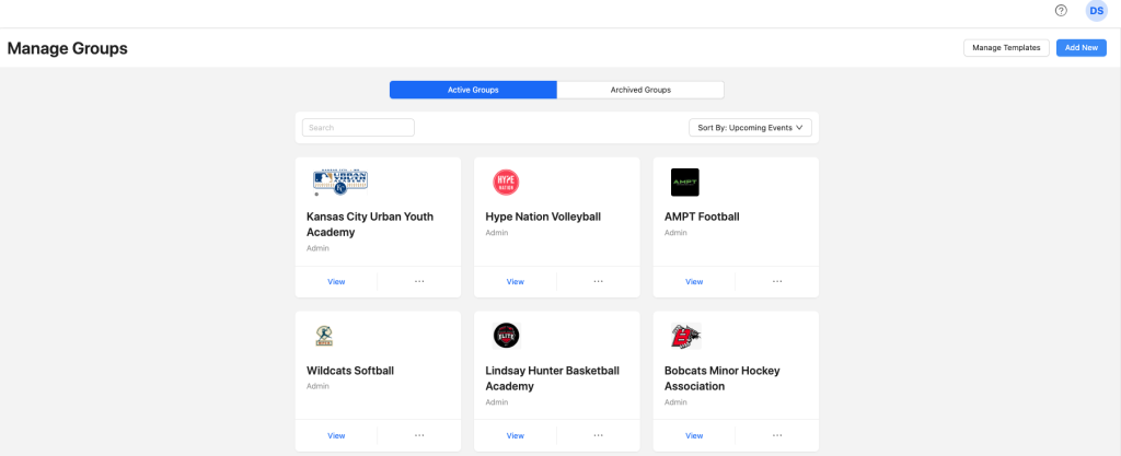 Add a group name (aka the name of your team within your sports organization or academy) and upload a logo.