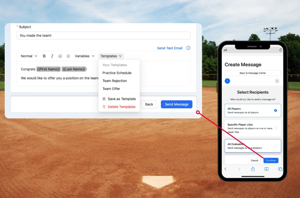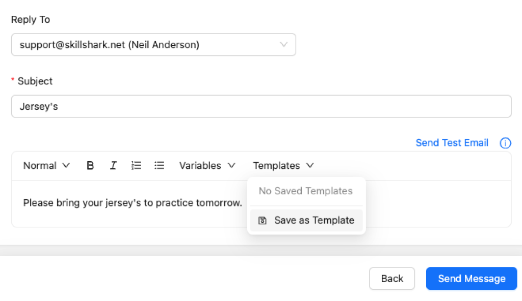 Admins and owners can now send direct messages to players and evaluators directly from within the SkillShark app. Keep athletes and evaluators updated on team placement decisions, practice schedules, and more without leaving the SkillShark platform.