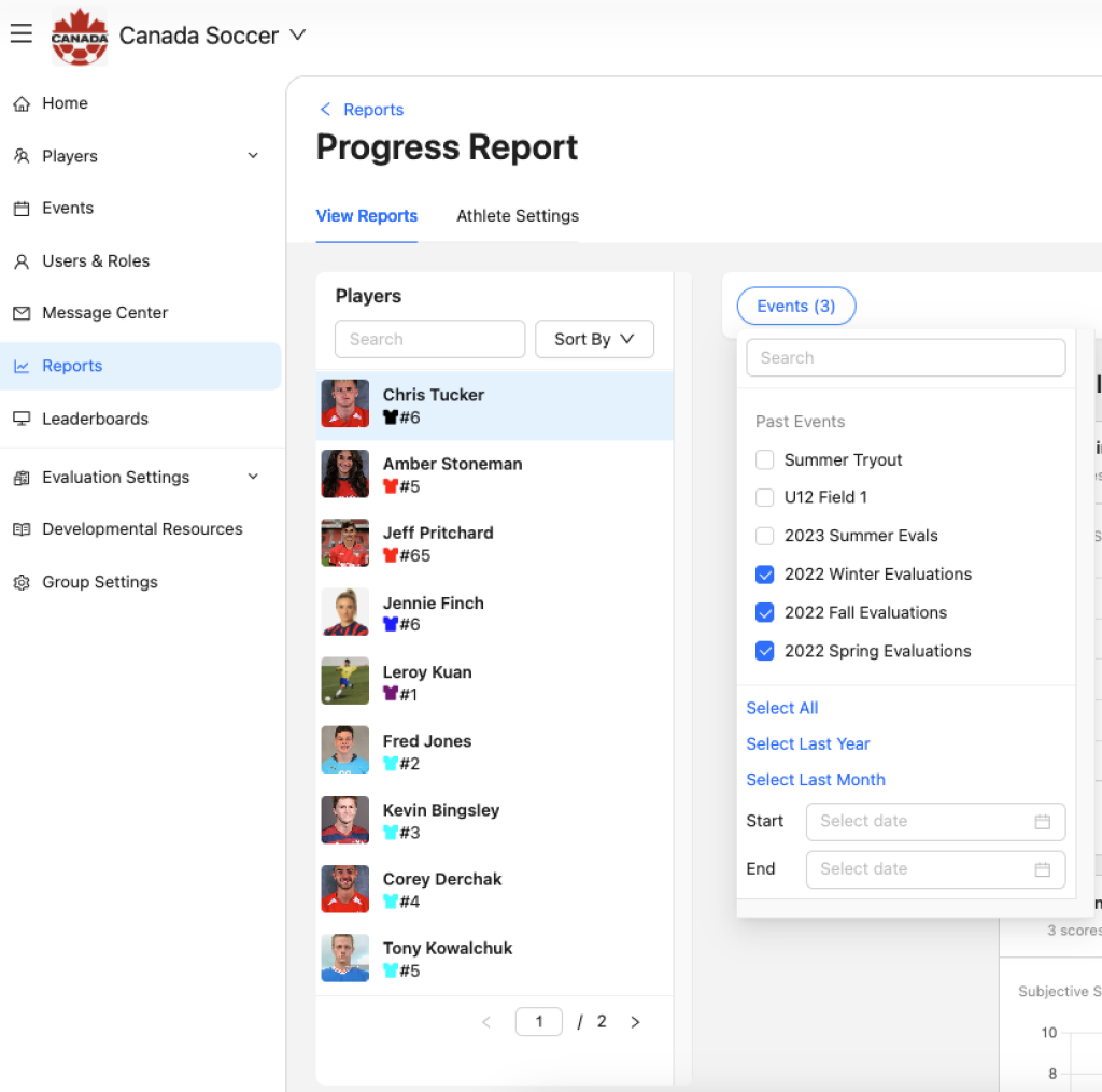 **Athletes must be evaluated on at least two events. Otherwise, their progress cannot be tracked.