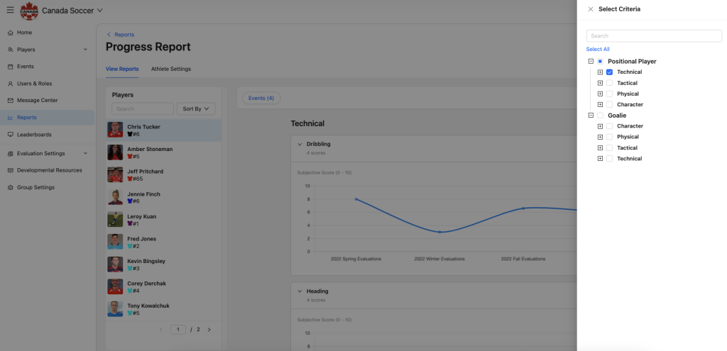 In this soccer example, we want to focus only on the technical skills (such as dribbling, heading, and passing).
