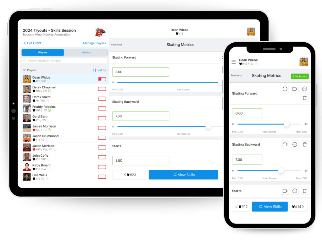 Score athletes using any smartphone or tablet. Customize your scouting evaluation template, upload players, and get to scoring!