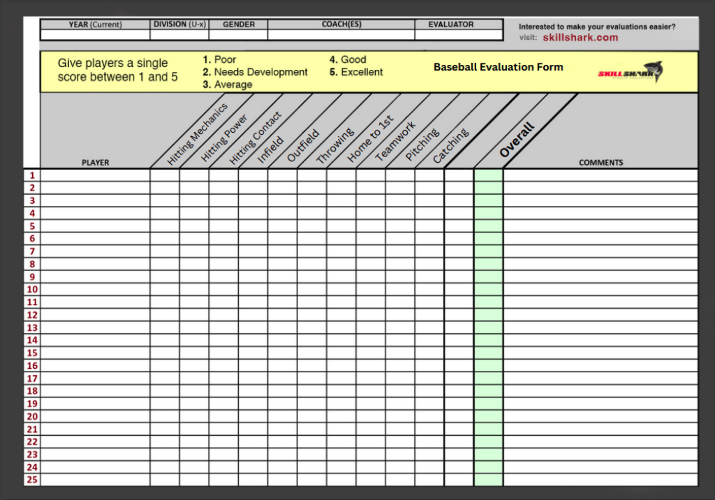 Baseball Player Evaluation Form