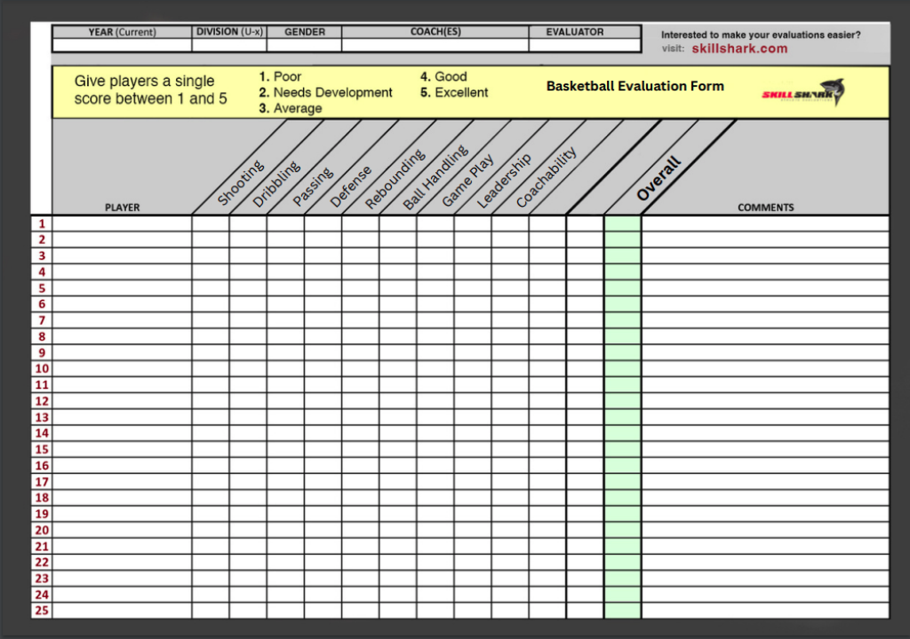 Basketball Player Evaluation Form