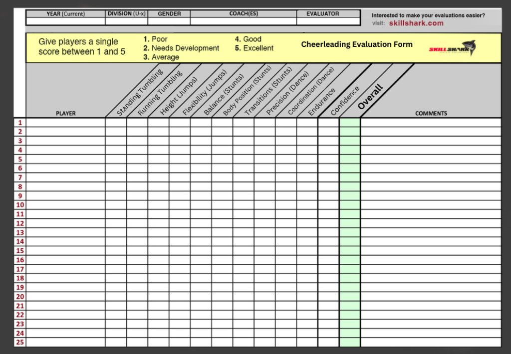 Cheerleading Evaluation Form