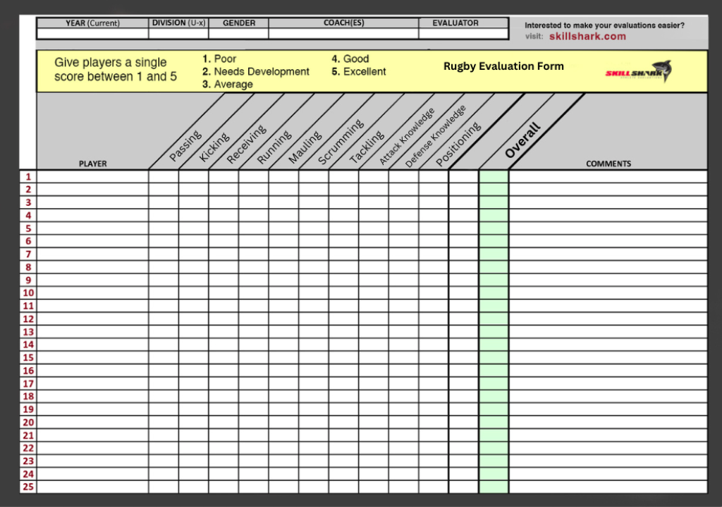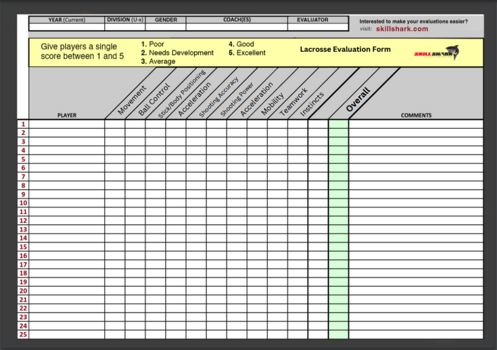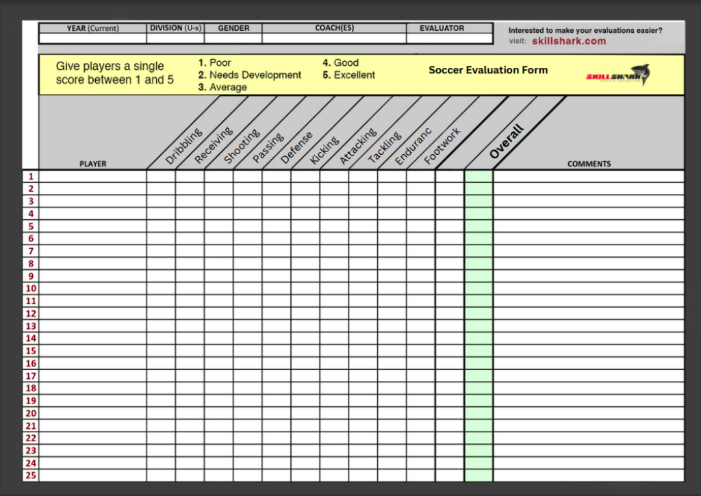 Download our sports evaluation forms as printable PDF and Excel templates for any player evaluation. Or, save time with our Sports Evaluation App!