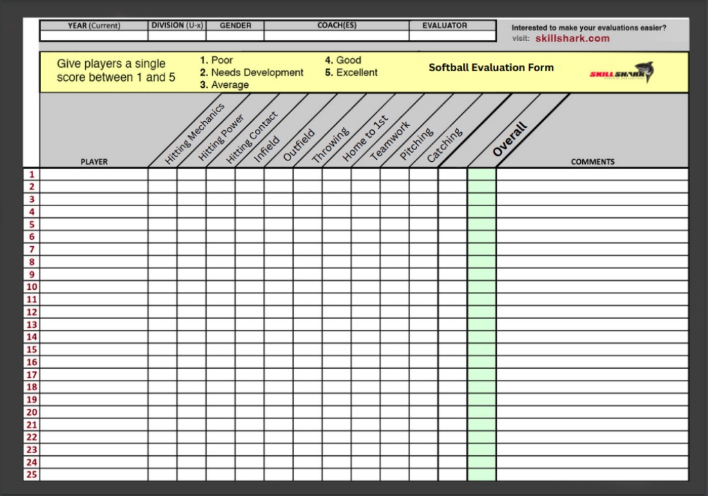 Or, save time with our Softball Evaluation App!